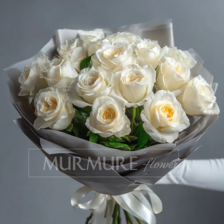 Светлый и тёплый, этот букет напоминает первые лучи солнца. Белые розы в стильной упаковке делают его идеальным подарком для любимой, мамы или коллеги. Сдержанная элегантность с нежной энергетикой.