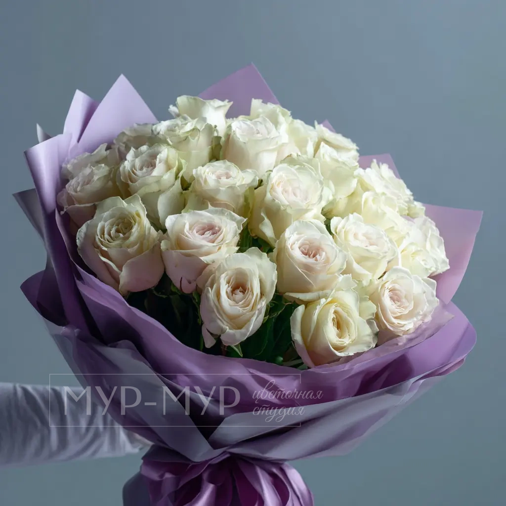 Мягкий и тёплый букет, навеянный атмосферой вечернего покоя. Белые розы создают уютное и гармоничное настроение. Идеален для романтического жеста или признательности.