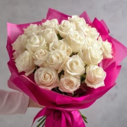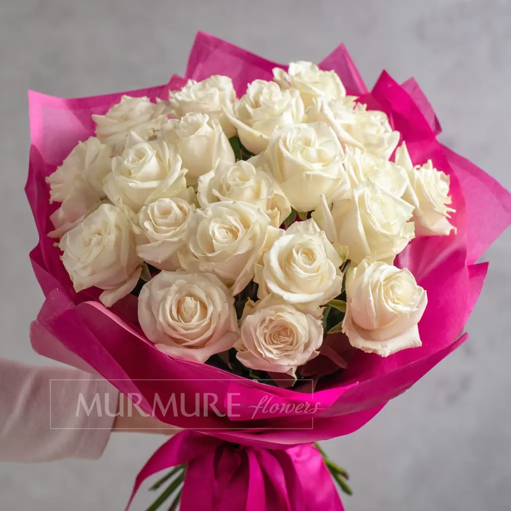 Композиция, отражающая искренность, нежность и заботу. Белые розы в этом букете говорят без слов — о чувствах, которые не нуждаются в объяснении. Универсальный выбор для самых разных поводов.