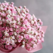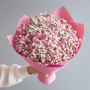 Светлая композиция с лёгким сиянием, идеально подходящая для подарка в утренние часы. Гипсофила в этом букете словно мерцает, подчёркивая лёгкость и стиль.