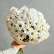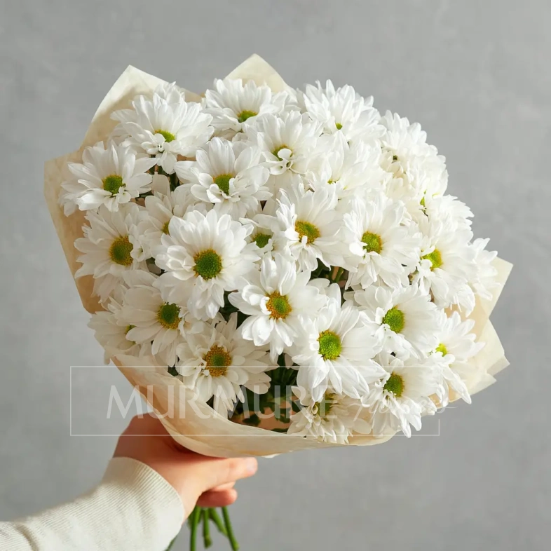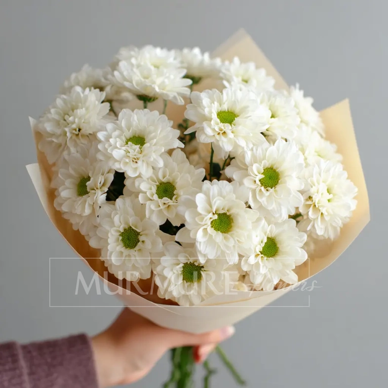 Чистый и сдержанный букет с белыми хризантемами — выбор для универсального подарка. Он символизирует уважение, искренность и заботу. Подходит для любого повода: от благодарности до делового поздравления.