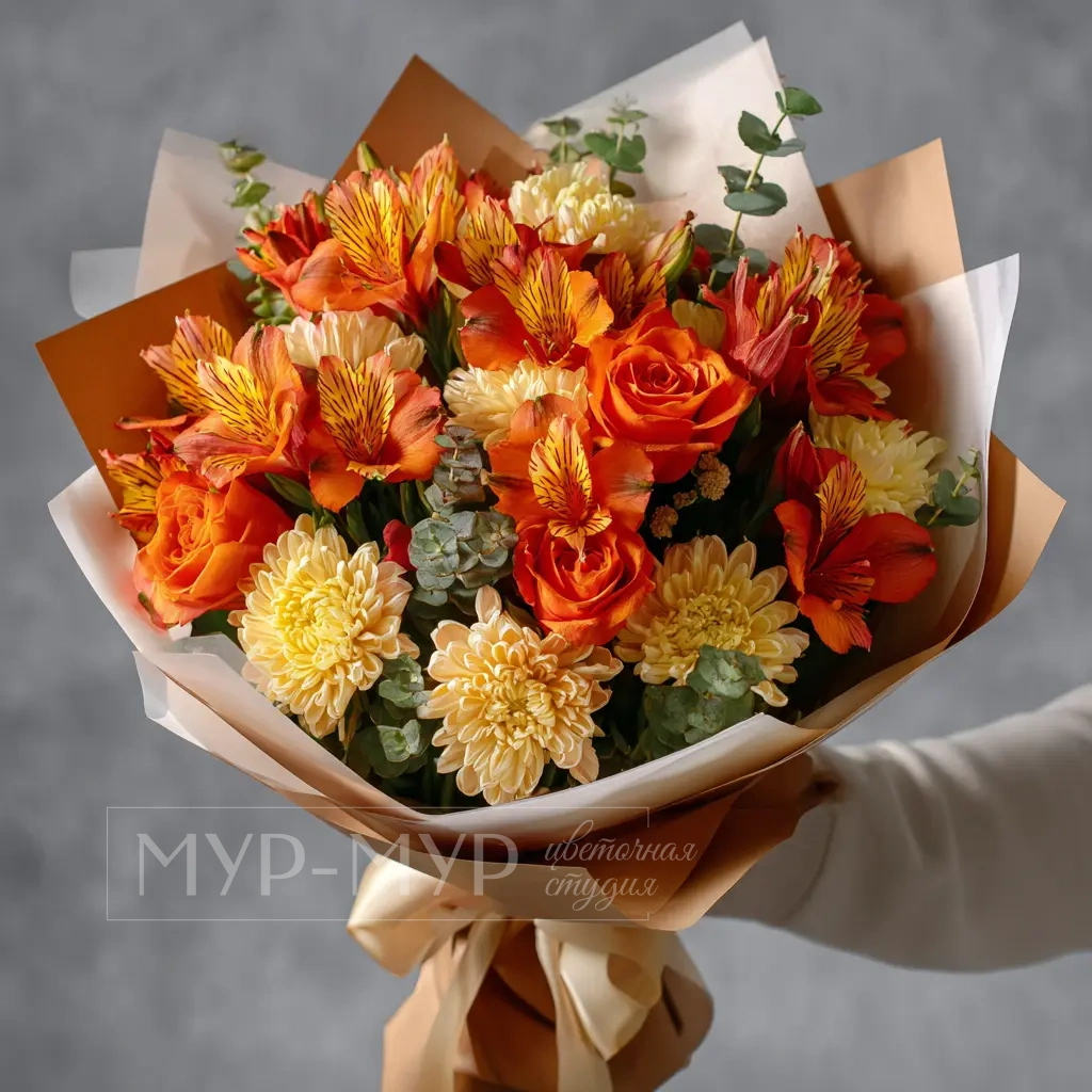 Яркие оттенки альстромерий в этом букете напоминают о жарких странах и насыщенной природе. Отличный вариант для летних праздников, отпускных встреч и эффектного комплимента.