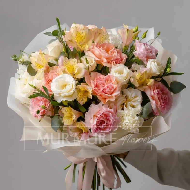 Цветы, наполненные солнечным светом. Альстромерии в тёплой гамме поднимают настроение и вдохновляют на добрые эмоции. Подойдёт для тех, кто хочет подарить немного тепла и заботы.