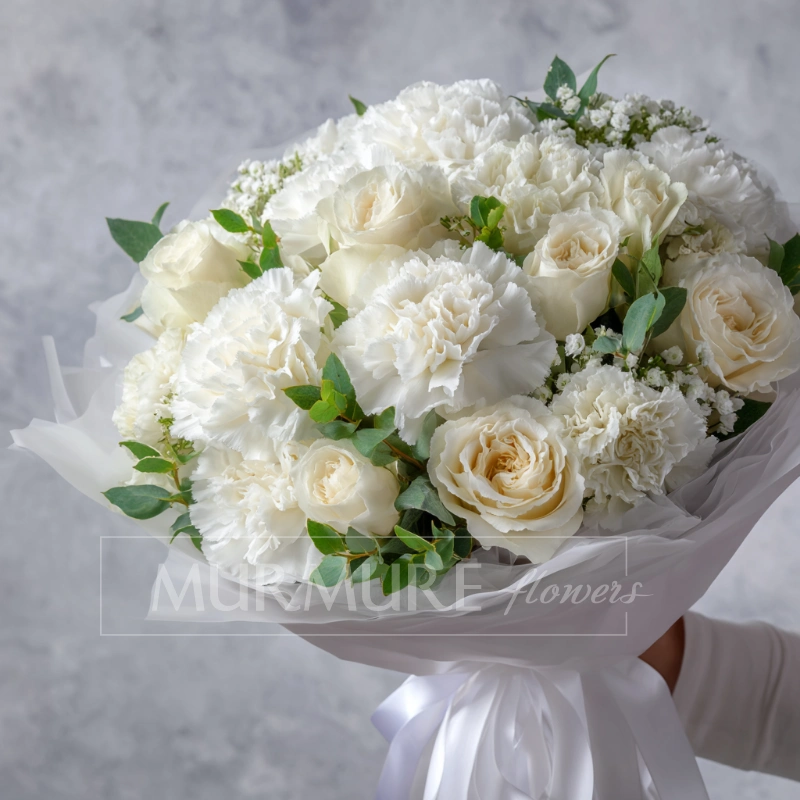 Букет с гвоздиками «Белый вальс»