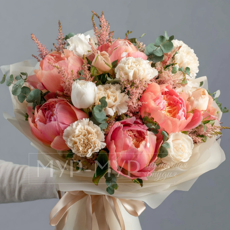 Букет с пионами «Медовый этюд»