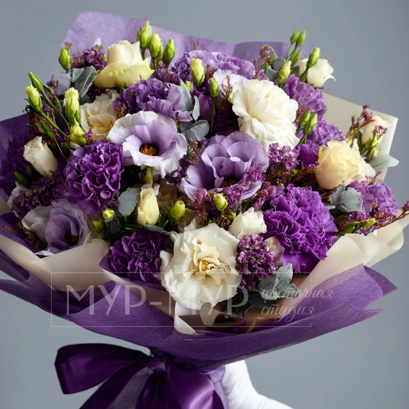 ГлавнаяКаталогБукетыБукет с эустомами «Сиреневый шепот»