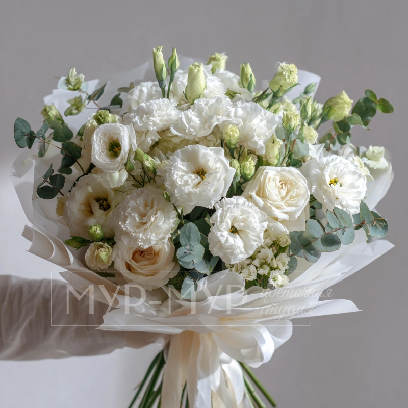 Букет с эустомами «Светлая вуаль»