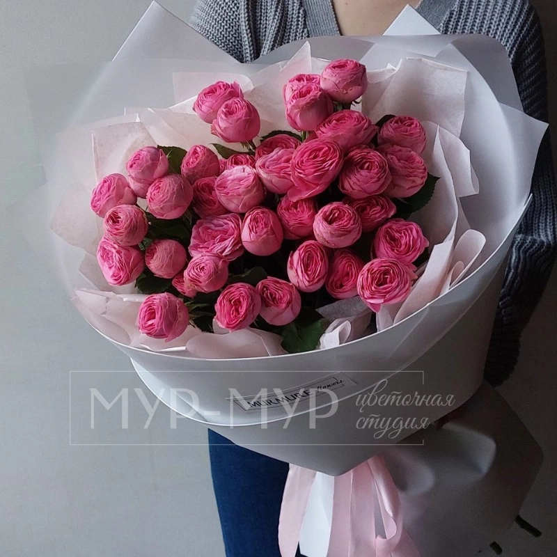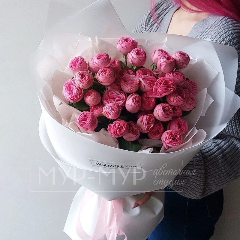 ГлавнаяКаталогМонобукет из пионовидных кустовых роз «Первое свидание»