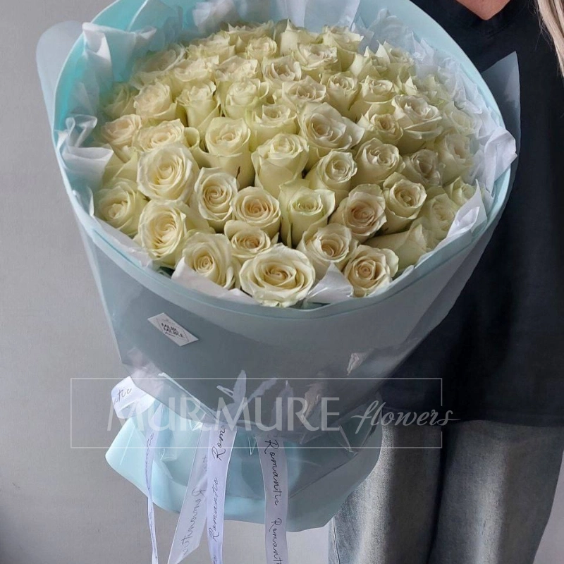 15 белых эквадорских роз 50 см