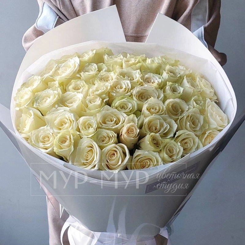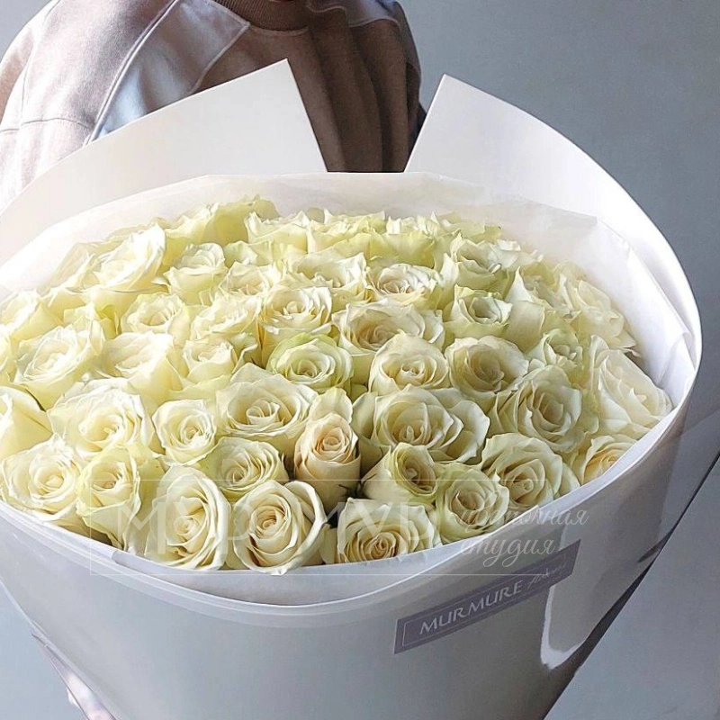 ГлавнаяКаталогБукет из 51 Голландской белой розы 40 см «Облако белых роз»