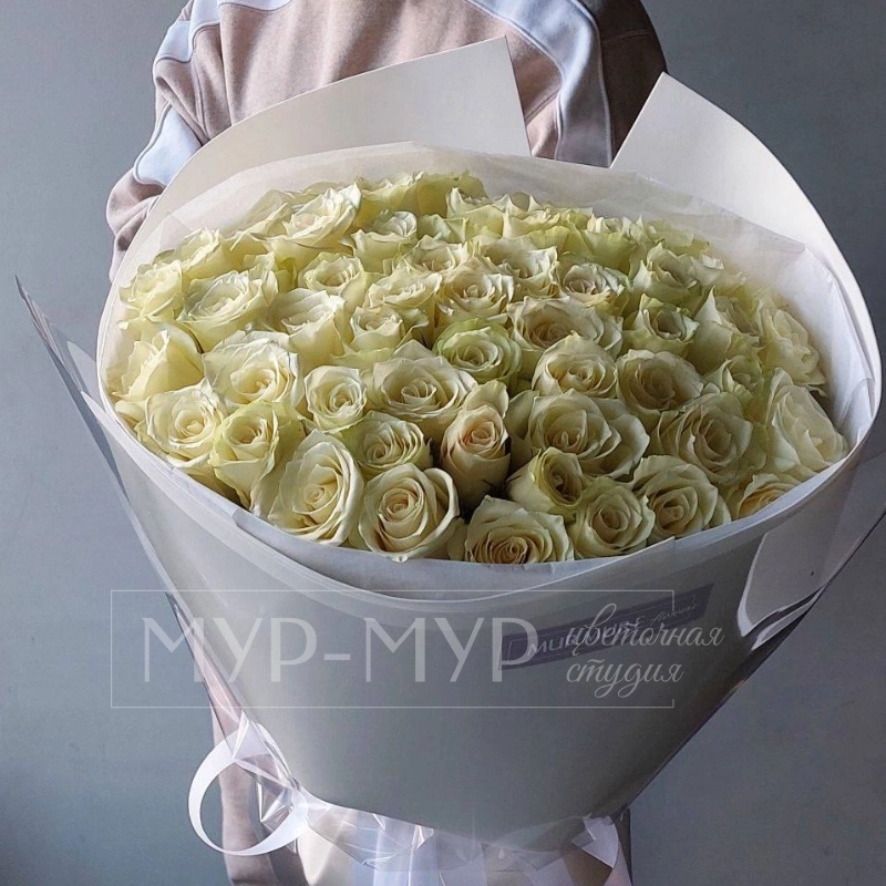 Букет из 51 Голландской белой розы 40 см «Облако белых роз»