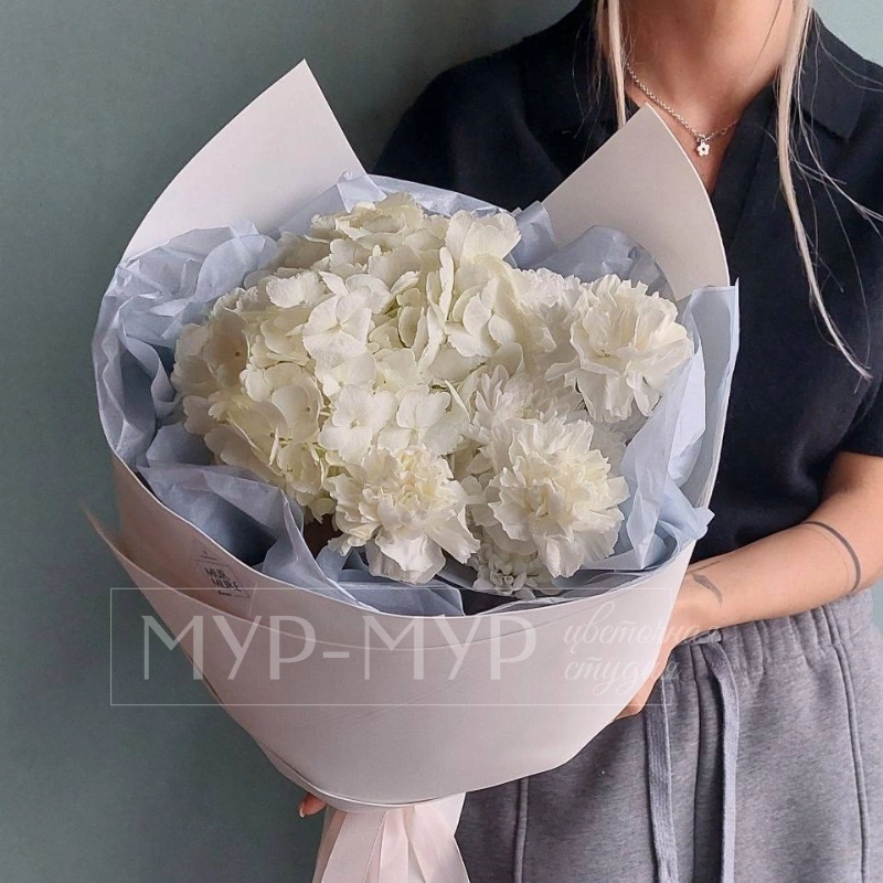Букет из гортензии и гвоздик «Сахарная вата»