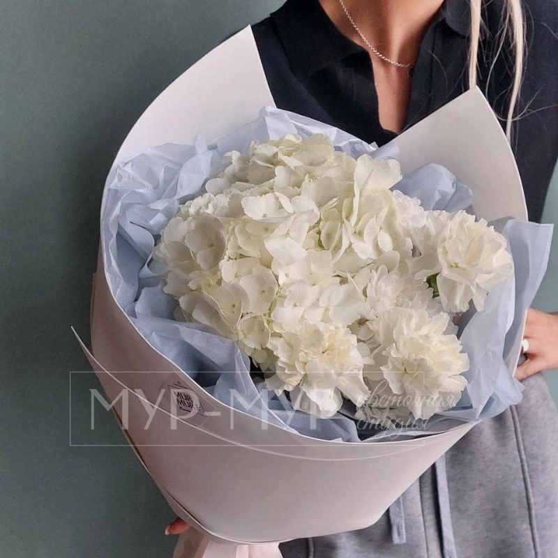 Погрузитесь в атмосферу нежности с букетом «Сахарная вата», созданным из изысканной гортензии, белых гвоздик и хризантемы. Такой простой, но в то же время стильный букет, идеально подчеркнёт особенный день и порадует любого получателя
