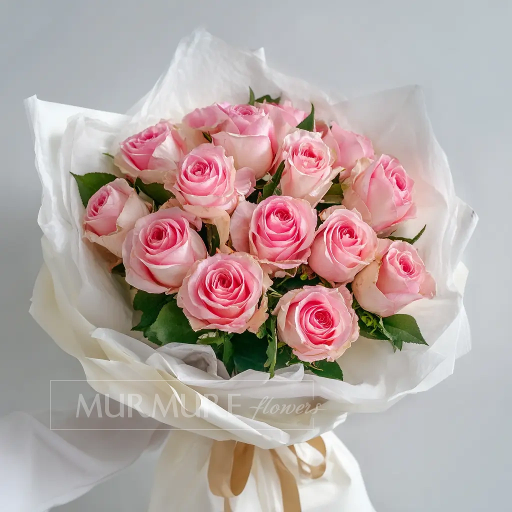 Элегантный букет из 15 розовых роз с крупными бутонами. Эквадорские сорта славятся своей стойкостью и внешним видом — подарите утончённость и заботу в одном букете.