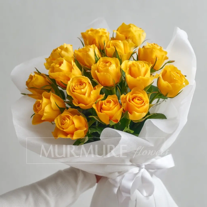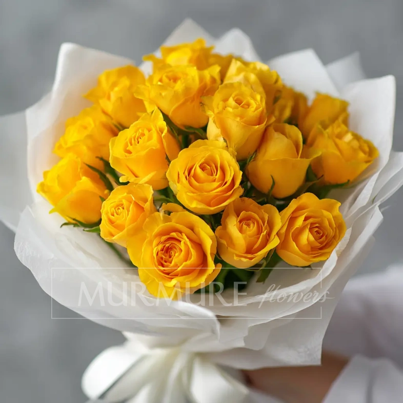 Яркий, солнечный букет из 15 жёлтых роз длиной 40 см. Символ радости, дружбы и позитива. Кенийские розы в этом исполнении станут отличным подарком коллеге, подруге или близкому человеку.